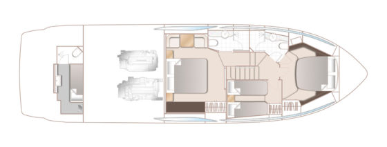 Vom ersten Moment an Bord werden die Teakdecks und luxuriösen Räumlichkeiten Ihren Aufenthalt auf dieser Yacht begleiten. Die 17,68 m2 große Flybridge begeistert mit umbaubarer Sonnenliege, zwei Sitzen am Steuerstand, einer Bar und ergonomisch ausgelegten Essbereichen. Durch die imposanten Salonfenster und die charakteristischen Rundum-Frontscheiben erstreckt sich vom Hauptdeck aus eine ungestörte Aussicht zum Horizont, und großzügige Fenster im Rumpf durchfluten die Kabinen mit Tageslicht. Diese Oase der Ruhe lässt sich überdies entspannt auf eine Höchstgeschwindigkeit von 33 Knoten beschleunigen – und besticht gleichermaßen durch herausragende Performance und kompromisslosen Komfort.