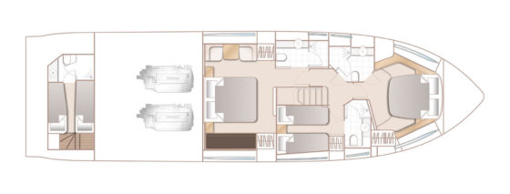 Die völlig neu gestaltete F65 vereint unsere akribischen Designansprüche mit allen Vorteilen neuester Infusionstechnik und erlaubt somit den Einbau von Ausrüstung und Ausstattung, die normalerweise nur bei viel größeren Yachten möglich sind. Auf der Flybridge mit einem großen Essbereich, Sonnenpolster achtern sowie einem einzigartigen runden Sitzbereich vorn, der in ein zusätzliches Sonnenpolster verwandelt werden kann, lässt es sich herrlich entspannen. Mit einem Durchgang zum Bewirtungsbereich auf dem Vorschiff und einer hydraulischen Badeplattform als Standardausstattung ist dies eine zukunftsweisende Yacht, die weiterhin neue Maßstäbe setzt.