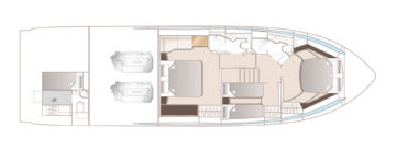 Die eleganten Linien der völlig neuen V60 bilden den Rahmen für ihr großzügiges und geselliges Cockpit mit reichlich Sitzgelegenheiten sowie eine komplett ausgestattete Bar mit Grill. Vor Anker können ein 3,30 Meter langes Beiboot oder ein Jetski über die elektrohydraulische Badeplattform bequem zu Wasser gelassen werden, die ansonsten auch als ruhig gelegener Schwimmbereich ideal geeignet ist. Gepaart mit einem MAN V8 1200 Motor und einer Höchstgeschwindigkeit von bis zu 38 Knoten ist sie eine rundum abenteuerlustige Yacht.